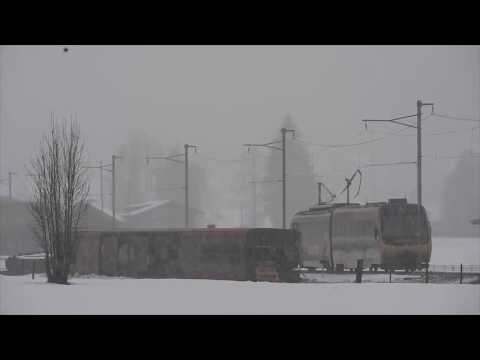В Швейцарии ураган снес поезд с рельсов (видео)