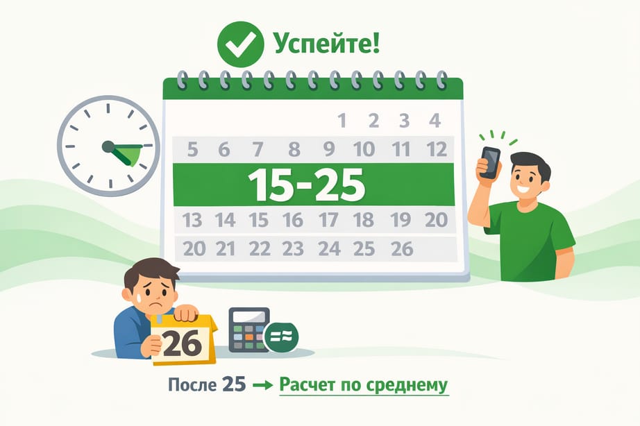 - Стандартное окно приема: с 15 по 25 число месяца
